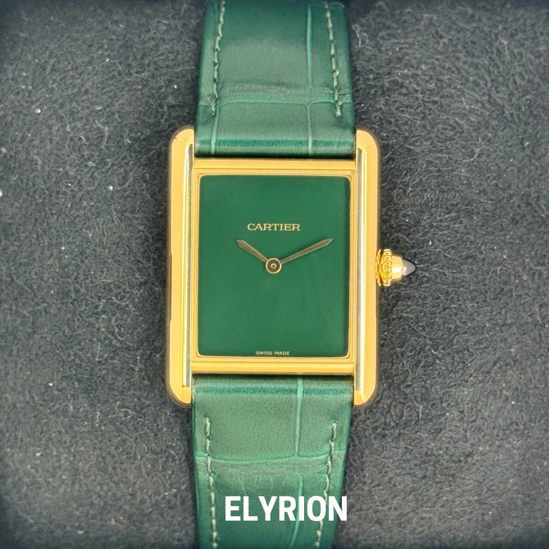 Chaque détail de la Tank Louis Vert & Gold évoque l'harmonie entre tradition et sophistication. Avec son boîtier doré éclatant et son cadran vert profond, elle incarne une élégance audacieuse, pensée pour sublimer chaque geste. Une montre qui ne suit pas les tendances — elle les crée.