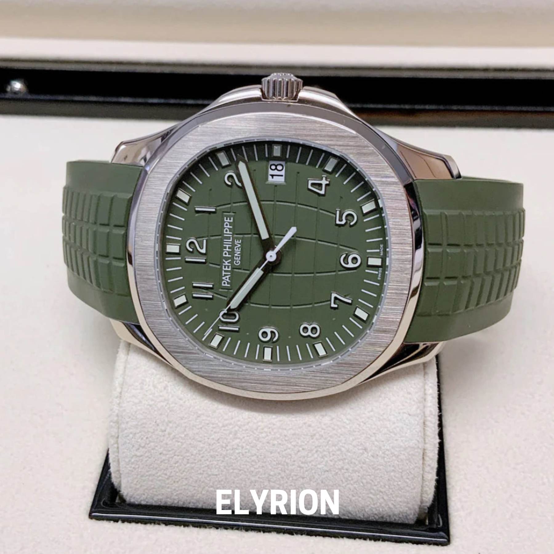 Fusion Parfaite entre Luxe et Performance . Équipée d’un mouvement automatique précis, d’un verre saphir anti-rayures et d’un boîtier en acier inoxydable, la Patek Aquanaut Verte offre robustesse et raffinement à chaque instant.